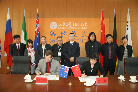潘鲁生,副院长李新,院长助理苗登宇,院长助理、办公室主任王立果,澳大利亚格里菲斯大学昆士兰美术学院代表团厄勒•布里德尔,皮特•万尼一行出席了签约仪式。签约仪式由副院长李新主持。