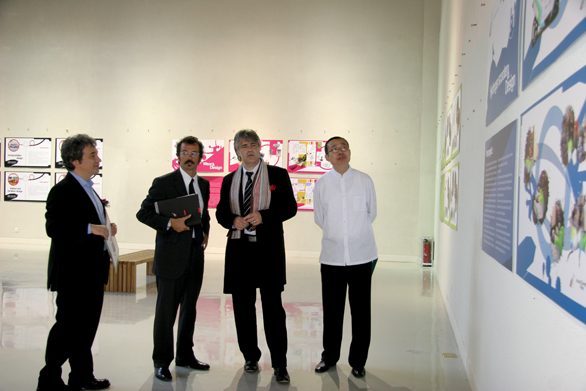 潘鲁生陪同下,国际设计艺术院校联盟及国内兄弟院校的来宾参观了在永利官网美术馆、博物馆举办的联盟会议系列展览。