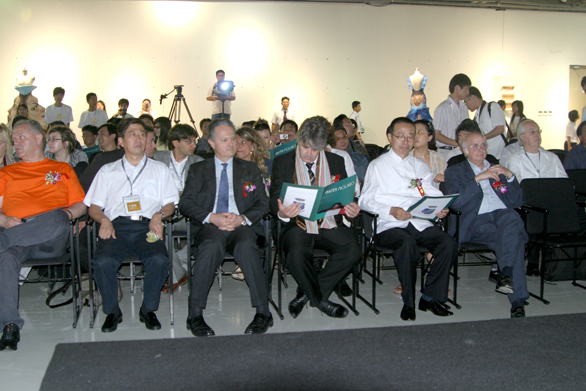 校领导陪同来宾参观了历届奥运海报珍藏展、世界大学生奥运海报展、意大利马克•雷尼欧当代艺术展、意大利莫拉罗时尚设计展、运动中的影像——和谐生活中的赢家、为运动而设计、中国yl8cc永利官网——意大利都灵应用设计学院学生概念展和为运动而设计等展览。其中,“历届奥运海报收藏展”展示了法国收藏家米歇尔•关农毕生收集的1896—2008年历届奥林匹克海报,涉及“和平与和谐”、“艺术大师与奥运”、“大海、帆船与奥运”三大主题,共102幅作品。 “世界大学生奥运海报展”展出了二十几个联盟院校的青年学子设计的200余幅作品,作品以“我们爱运动”、“反对兴奋剂”和“奔跑”为主题,运用新颖的创意表现和丰富的设计语言,表达了对北京奥运会的期盼和祝福。“意大利马克•雷尼欧当代艺术展”等来自意大利的一系列展览,采用声光电相结合的表现手法,包括体现概念设计的实物展示,体现和谐、奥运主题的创意体育摄影作品,时尚装置艺术品,时装展示等内容。丰富多彩的展览作品使观众得到艺术的享受,永利官网学生为展览设计的作品得到了来宾的一致好评。