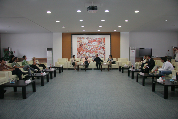 潘鲁生,副院长李新,院长助理、办公室主任王立果在长清校区贵宾接待室会见了意大利文化中心主席温琴佐•桑弗一行。