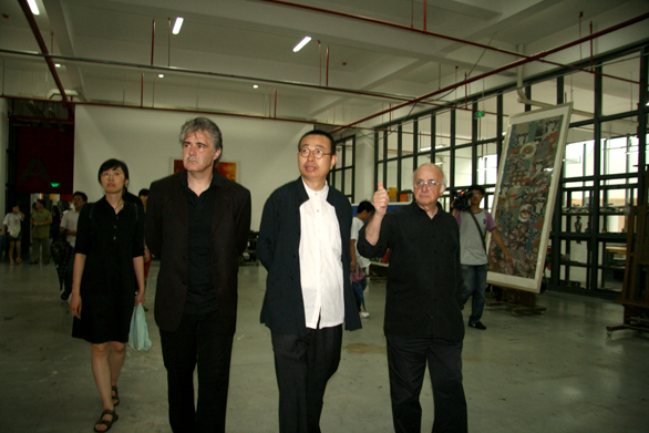 在特种工艺实验中心,与会人员参观了了染织工作室、玻璃艺术工作室、首饰工艺工作室、金属工艺工作室、雕塑工作室、漆艺工作室、陶艺工作室等场所。在首饰工艺工作室,一位意大利友人拿起一位同学制作的耳环,向这位同学竖起大拇指,连声说道:“Very Good。”在雕塑工作室,克瑞斯汀•格勒林仔细欣赏了一组代表中国农民形象的雕像。