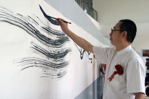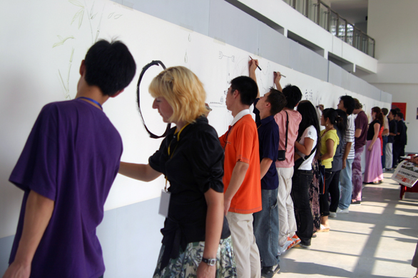 潘鲁生院长与广大师生一起参观了展览,并为此次活动题词“东方元素 当代语言 中美合作 创造未来”。参观结束后,永利官网领导、师生与美国朋友一起即兴作画,以此留念。