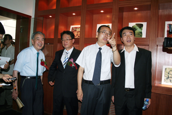 原山东省人大常委会副主任严庆清,山东省委宣传部副部长徐向红,山东省人民政府外事办公室副主任崔乐生,韩国驻青岛总领事馆副领事郑载薰,韩国庆云大学校视觉影像学部副学部长池龙善教授,韩国庆云大学校视觉影像学部金炳澈教授,池龙善教授夫人昌仁淑及我院党委书记于茂阳,院长