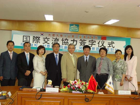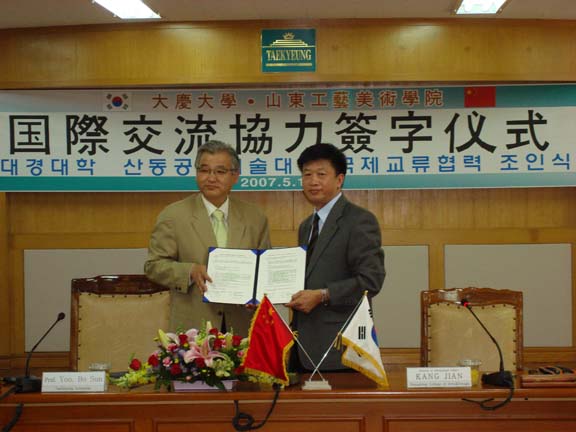 2007年5月17日至21日,应韩国大庆大学校长俞进善博士的邀请,山东工工艺美术学院国际交流与合作处处长康健、应用设计学院院长任仲全、书记扈国珍受