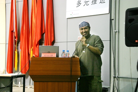 S.Murad先生来自孟加拉国,多年从事艺术实践及文化交流活动,并成功策划过许多大型艺术活动,目前是孟加拉国丰良国际艺术学院副院长、北京城市研究院、中国中央美院的特聘讲师及在读博士。在“视觉发现与传达”部分,S.Murad先生通过个人创作中具体实例说明如何通过生活中多方面的、多角度的立体观察实现艺术的发现,并如何根据艺术构思、立意的要求,选择最佳的形式进行视觉传达。在“城市导向设计”部分中,作为“天安门广场辅助导向系统设计”总策划,S.Murad先生为与会者详细介绍了该项目设计开发过程。