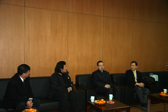 董占军、造型艺术学院院长陈飞林、国际交流与合作处处长康健在长清校区二楼贵宾室接待了来宾。