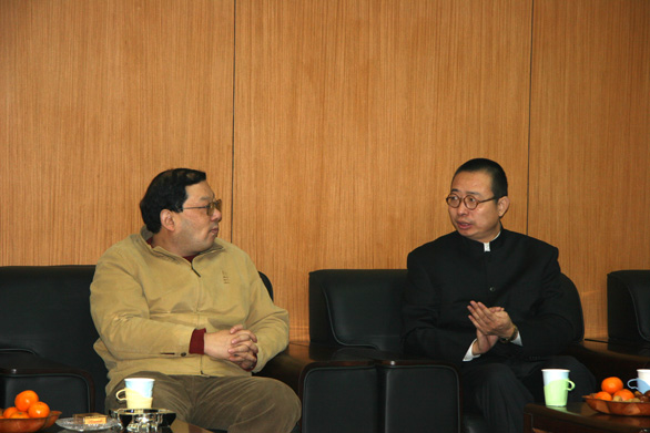 1月5日,中国孔子基金会秘书长梁国典来永利官网长清校区访问,院长潘鲁生与梁国典就传统文化发展以及开展学术交流合作的有关问题进行了座谈,并陪同参观了永利官网图书馆。