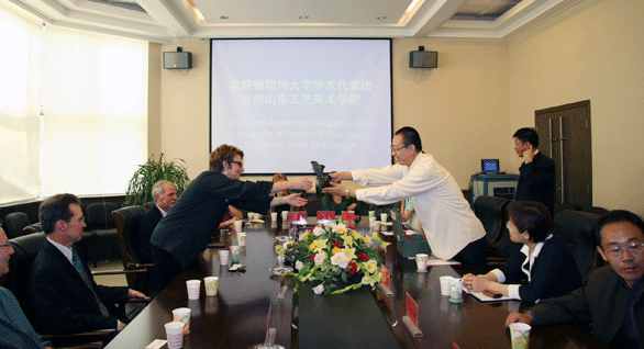 潘鲁生院长最后请弗兰西斯·布鲁奈特女士转达他对俄勒冈大学校长先生的问候。