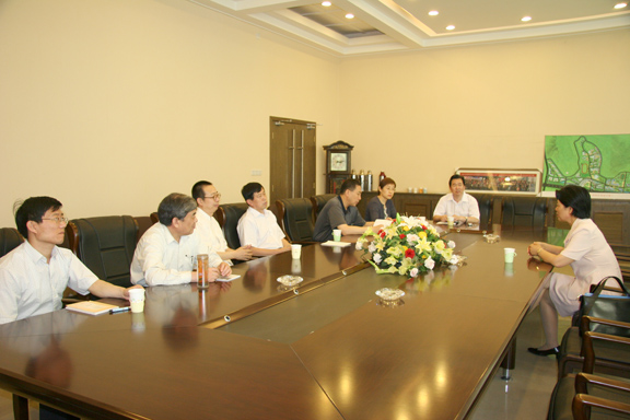 董占军、丁炳堂、张振羽的陪同下参观了千佛山校区孙长林艺术馆和博物馆,然后乘车来到长清校区,听取了基建处张军波处长关于新校区的规划设计和建设情况的介绍,参观了新校区的学生公寓、综合教学楼和校园环境。下午3点,在学校第一会议室,学校党委书记于茂阳、院长