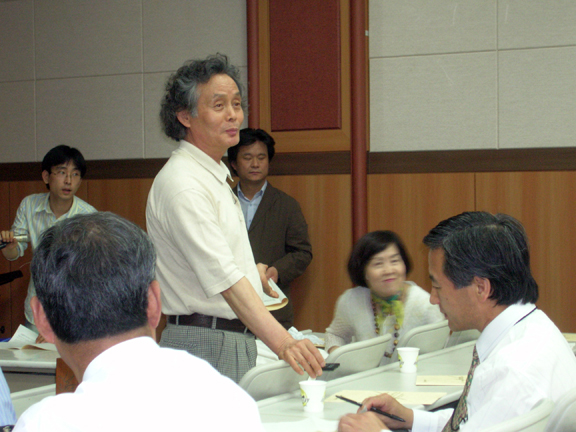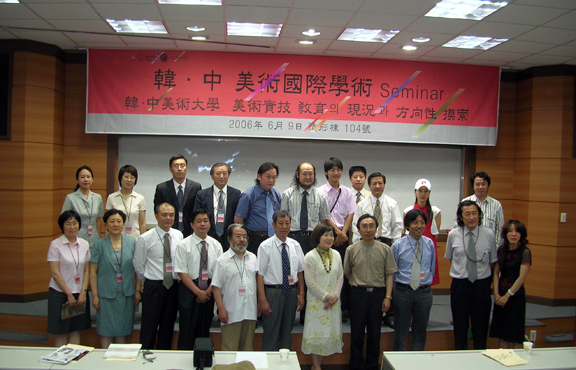 六月九日十四时,“中韩教授国际学术研讨会”在双方精心筹措下,在庆北艺术大学报告厅举行。主题为“韩中美术大学美术实技教育现况及方向性探索”。研讨会由卢泰范教授主持,朴校长首先阐述了此次研讨会的宗旨,卞教授介绍了庆北艺术大学的教学体系以及教授和部分学生作品。陈飞林就永利官网教学体系的结构、培养目标与培养要求、主要课程设置等基本情况作了深入而全面地阐述,并同时展示了yl8cc永利官网造型艺术学院学生毕业展的优秀作品。之后,双方教授以及学生就大家普遍关心的问题如师资配置、课程学习、专业方向、学分制、学生就业等问题相互提问并探讨。陈飞林全面、精彩、极具学术性与亲和力的解答赢得与会者阵阵掌声。孙民增、迟海波等教授也结合本专业对庆北艺术大学教授、学生就各自专业方面提出的问题给予了解答。