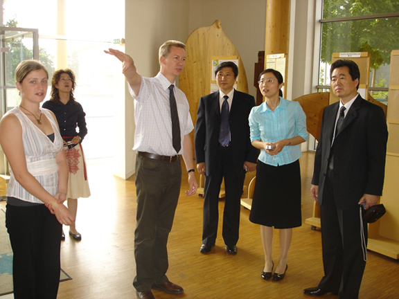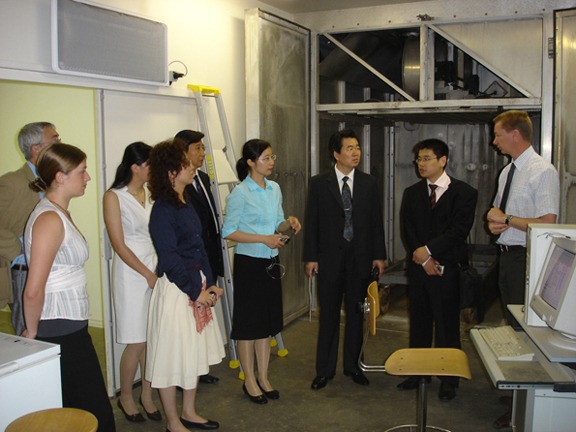南特高等木材工业学院副校长Mark Irle博士向yl8cc永利官网刁副院长等人介绍了学院专业特点、专业设置、课程体系、教学方法、教学管理、国际氛围、科学研究等情况,随后带领大家参观了教室、实验室及学生活动场所。一系列设施齐全的加工、干燥、上漆、检测实验室给考察团成员留下了深刻的印象。木材学院注重培养学生的创造力及实务精神,每学期学院向学生布置一项名为“挑战”的课题,既可以作为专业性的学术命题,也可以作为普通的社会实践,比如今年几个学生就选择从法国穿越英吉利海峡游到英国,以此作为对自己体能及意志的挑战。学院用这项课题鼓励学生不断创新的精神。