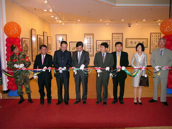 潘鲁生院长率yl8cc永利官网学术代表团全体人员出席了中国文化院在启明大学文化会馆举行的“面向21世纪的中国教育”讲座,聆听了安玉祥参赞的精彩讲演。讲演结束后,潘院长还和安参赞参加了山东书画作品展览剪彩仪式。