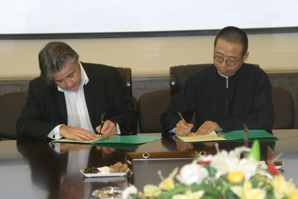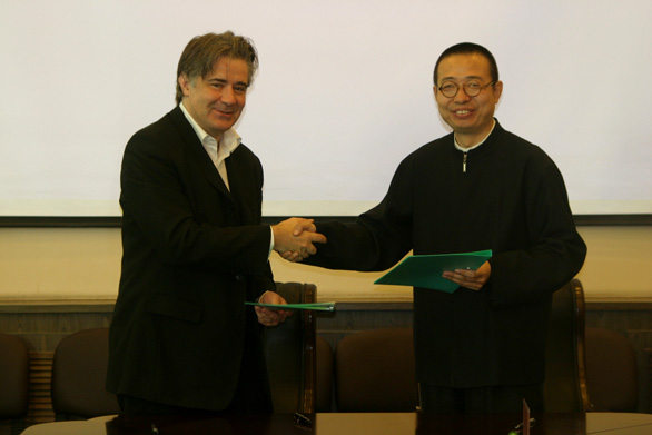 潘鲁生院长在第一会议室与法国南特高等设计学院院长格勒林教授就两校合作事宜达成初步合作意向,并签署合作协议。
