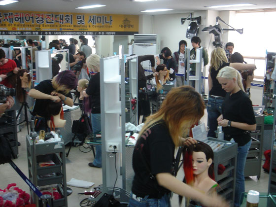 国际化妆发型大学生协会本部驻在法国,从1995年诞生,会员国有30多个国家,此次比赛是在欧洲激烈的竞争下选出13个队,亚洲15个队,共28个队100多名竞争者参加,也有非竞争者之间的表演。4月22日下午1点,化妆发型比赛于韩国大庆大学美发教室举行,是利用假长发模型进行女性化妆发型艺术设计和男性剪发比赛,时间分两个阶段,共两个小时,由来自世界各地的化妆发型艺术家,世界最高剪发手和欧洲化妆发型联盟会长Carina Ladow女士当场评分。这次女性化妆发型艺术设计的作品,因为世界各国的发型、发色、发式各不相同,所以具有形象性、装饰性、观赏性、趣味性、象征性等艺术形态的作品逐渐呈现出不同的感觉,彩色发型艺术与肤色、眼睛、服饰、头饰以及妆形等各种色彩相互搭配形成了和谐的色彩美。国际男子发型趋势,仍以短发占主导地位,趋向体现发型的色调,突出个性,同时彩色漂染已占有重要位置,刘海和发稍处用剪的方法做出特殊形状,使男子发型增添了几许生动和浪漫的情趣。之外非竞争部门也表演出自己的发型艺术作品。这次大会还有发型模型表演、韩国服装模特表演、传统服装表演,同时还召开了世界级的发型学术研讨会,本次活动为今后化妆与发型专业的教师和学生提供了一个学术交流的平台,同时也向社会集中展示了时尚艺术的最新成果。