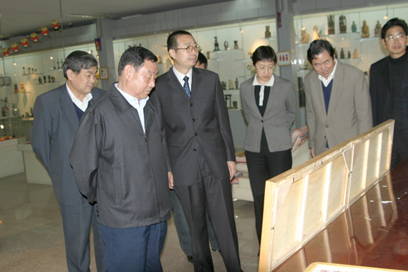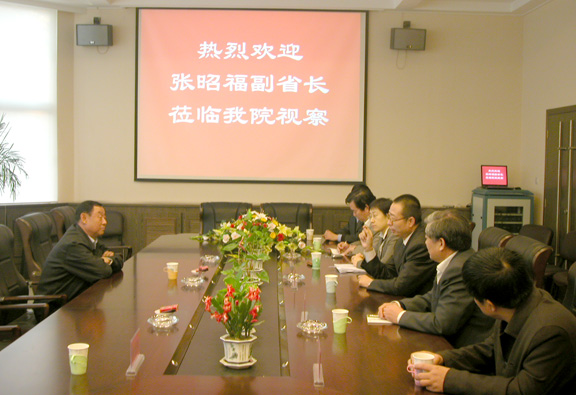 潘鲁生、党委副书记郭兆志、副院长李新、刁在祥、张云龙、调研员孙凤刚在学院第一会议室接待了张昭福副省长。
