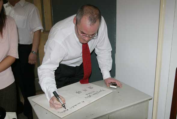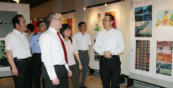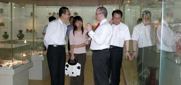 潘院长向大卫·泰勒先生介绍了我院有关城市文化建设的相关专业领域,表达了高校应为区域经济建设、为城市文化建设服务的观点。在潘院长的陪同下,大卫·泰勒一行先后参观了学院美术馆、孙长林艺术馆和中国民艺博物馆。大卫·泰勒先生对博大精深的东方文化赞叹不已,并欣然题词留念。