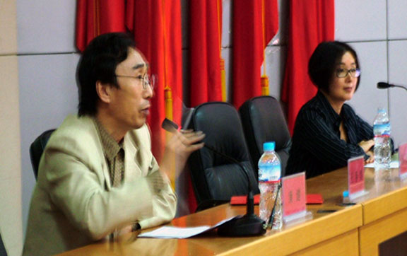 学术报告会由美术系主任陈飞林教授主持。王春犁女士介绍了现代艺术的背景、现代艺术的概念以及现代艺术的发展轨迹,特别强调了现代艺术与技术、现代艺术与媒介、现代艺术的国际性与本土语言和当代生活的关系及其含义,并运用了大量的图片资料。台上台下互动,使我院师生对当代艺术有了更多、更全面的了解。