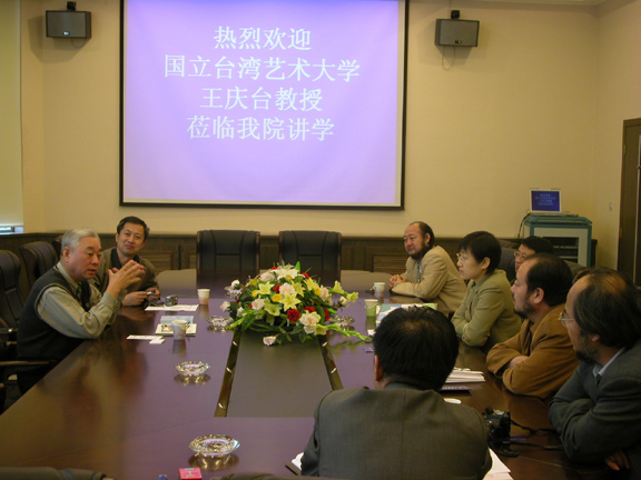 2005年10月21日,台湾学者王庆台来访yl8cc永利官网。王庆台,美国密苏里州Webster(威伯斯特)大学艺术研究所获硕士学位,现任国立台湾艺术大学研发长、国立台湾艺术大学教授兼古迹艺术修护学系系主任、国立台湾艺术大学造形艺术研究所兼任教授、国家职业大赛木雕类裁判长、李梅树基金会理事、台北市政府艺文补助评审委员。