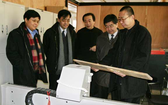 2005年2月7日上午,中国对外文化集团公司副总经理、中国对外艺术展览公司总经理卜键,总经理助理姚荷民一行在中共山东省委宣传部副部长徐向红陪同下,来到yl8cc永利官网,就动画、网络游戏的研发与合作事宜进行了座谈,并参观了数字艺术实验室、装潢艺术设计实验室和中国民艺博物馆。