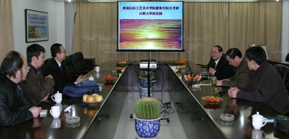 潘鲁生院长一行。日照市委副书记李守民、副市长解世增以及日照市委副秘书长、日照大学科技园主任王克军、副主任姜书明参加了接待。