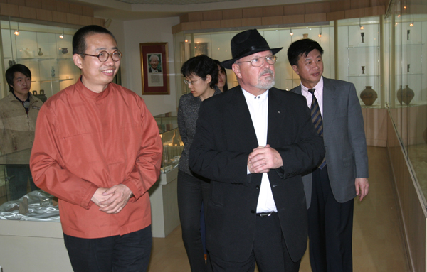 潘鲁生院长陪同客人参观了学院博物馆和艺术馆,外事办副主任康健陪同参观和会谈。