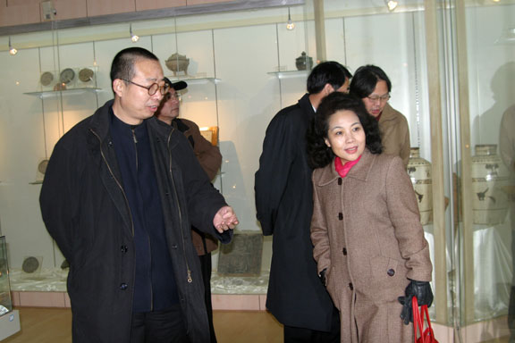 座谈会后,在院领导陪同下,柳文敏、张志民一行先后参观了设计艺术学科重点实验室、孙长林艺术馆、博物馆。学院领导对重点实验室的设备配置、设备利用以及孙长林艺术馆、院博物馆的藏品情况等向来访客人进行了介绍与说明。来访客人对学院“以教学为中心,以教师为主导,以学生为主体”的办学理念表示认同,并为我院艺术馆藏机构的丰富藏品和珍贵文物叹为观止,对我院领导为学院捐赠珍藏表示敬佩。参观结束后,山东艺术学院领导纷纷题字留念。