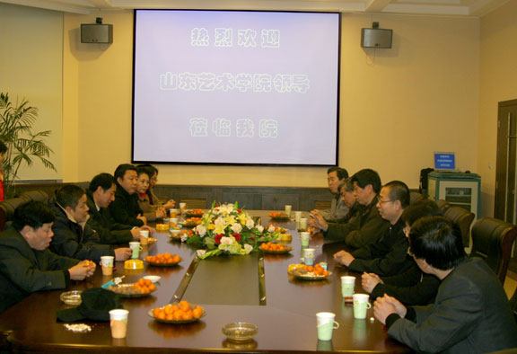 潘鲁生,党委副书记郭兆志,副院长王秀存、李新,纪委书记刁在祥,副院长张云龙在学院第一会议室接待了来访客人。