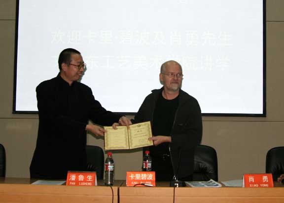 潘鲁生院长、装潢系苗登宇副主任以及众多师生热情欢迎、接待了卡里•碧波先生一行。