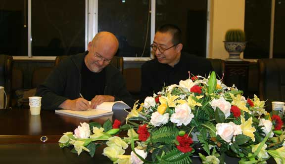 潘鲁生院长与卡里碧波先生就中国与外国的文化异同及艺术设计理念等方面进行了热情的座谈和交流,并互赠了各自的签名画册留念。