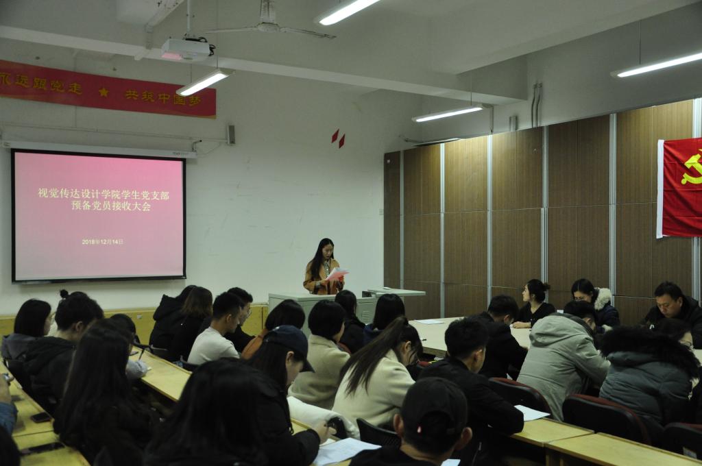 12月14日下午,视觉传达设计学院于三楼多媒体召开预备党员接收大会。会议由视觉传达设计学院学生第一党支部书记刘阳主持。党总支副书记刘爱民、教工支部夏军玲、张培源、李永慧、齐立稳列席会议。学生第二支部书记陈瑶、支部党员、预备党员、发展对象和入党积极分子参加会议。