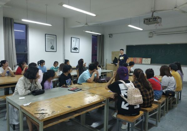 9月7日晚,视觉传达设计学院在四合堂召开了2018级新生大会,此次大会由辅导员刘阳主持,视觉传达设计学院党总支副书记刘爱民、辅导员陈瑶对班会召开情况进行了督导。
