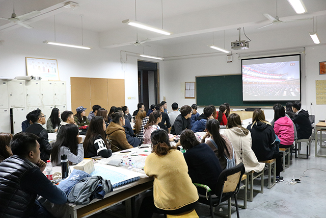 为提高青年学生政治素养,全面学习习近平总书记在中国共产党第十九次全国代表大会上的讲话精神,10月18日晚,视觉传达设计学院组织学生党员,全体班长、团支书于教学楼520教室观看了中国共产党第十九次全国代表大会开幕式视频。
