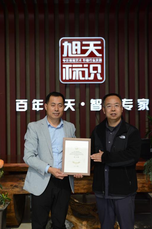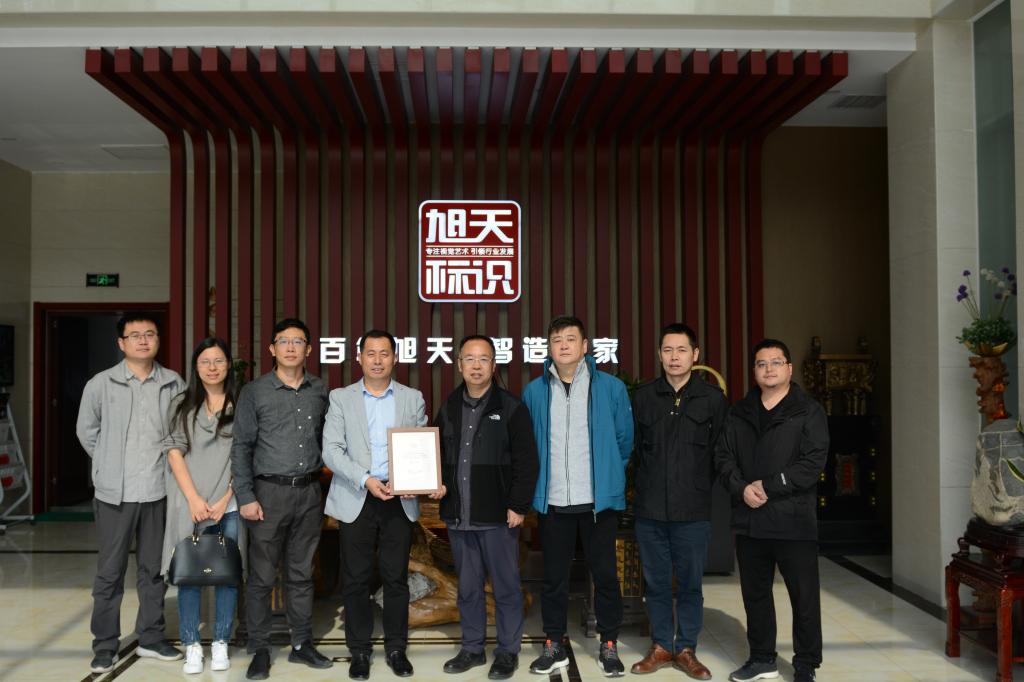 山东旭天标识工程有限公司是一家以城市空间环境、视觉传达的形象提升为发展方向的企业,创建于1998年,业务范围涉及城市形象及标识系统的设计规划及制作施工、品牌策划、城市空间环境艺术等。吴焕文一行在旭天标识工程有限公司总经理苗玉峰的陪同下先后参观了标准化生产加工厂区、设计部、大型展厅。