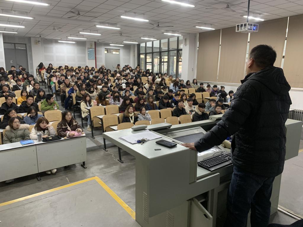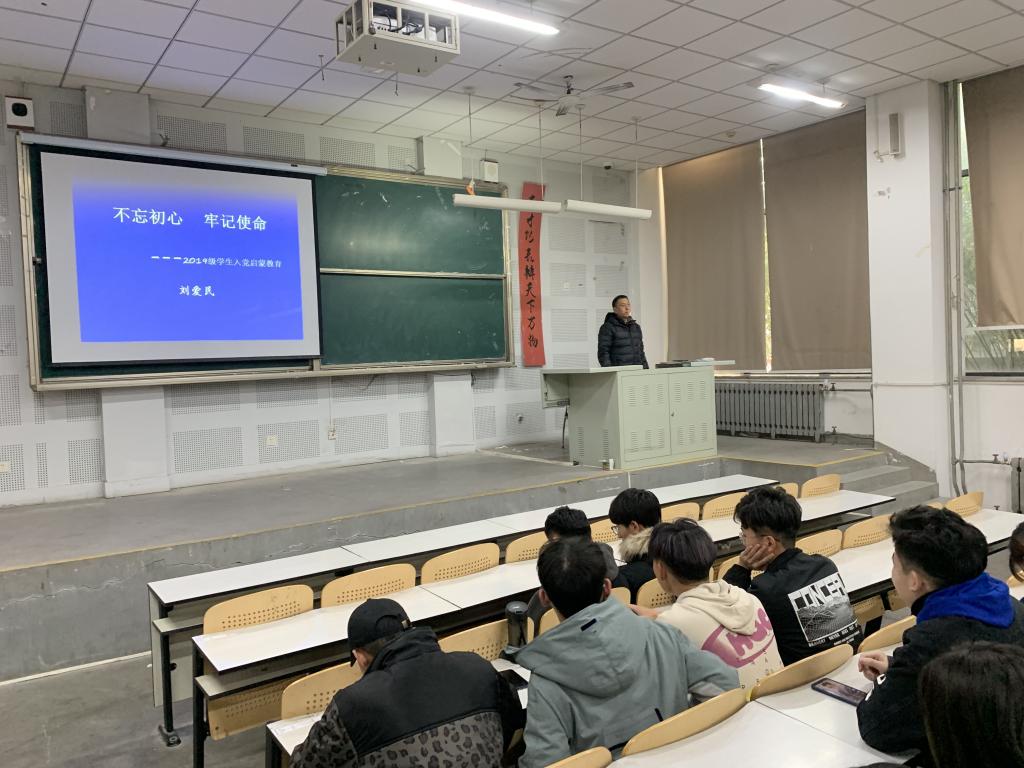 2019年12月3日下午,视觉传达设计学院党总支副书记刘爱民在七合堂,结合永利官网当前正在开展的“不忘初心,牢记使命”主题教育,给2019级新生上党课,对新生进行入党启蒙教育。