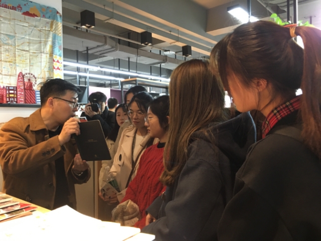 参观过程中,公司负责人向同学们展示了其中陈列的许多优秀作品,并对公司设计师们立足项目的实际需求出发,针对版面设定、装订形式、等项目进行工作的设计理念进行了讲解。李经理还讲到,值得注意的5G时代已经来临,新之航传媒集团作为中国领先的品牌战略服务商,将持续提升传播理念和技术水平,充分运用新媒体武器,带给客户更加优质、高效的服务体验和营销成效,如此前卫的设计理念也值得他们运用到当下的设计中去,拓宽视野,不再局限到某一个层面当中,做出更为开放的作品。随后来到一线设计师的办公区域,提前感受到真正的办公氛围,每位同学的心中都有感触;设计师也非常热情的为他们介绍。