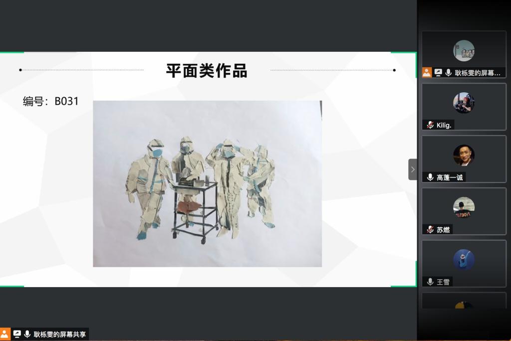 本次“疫’路同行、心灵绽放”主题活动共分为三个阶段,6月10日至6月15日为启动阶段,6月15日至6月30日为作品的征集阶段,7月5日至7月8日为作品评选阶段。活动共征集到来自全校各个学院的124份作品,分为立体类与平面类两部分。本着公平公正的原则,按照内容积极向上、紧扣疫路同行、心灵绽放活动的主题、作品新颖独特原创等标准进行综合评选。本次活动共评选出一等奖2名、二等奖3名、三等奖6名,优秀奖10名。活动最后,评委老师对获奖的作品进行了点评。