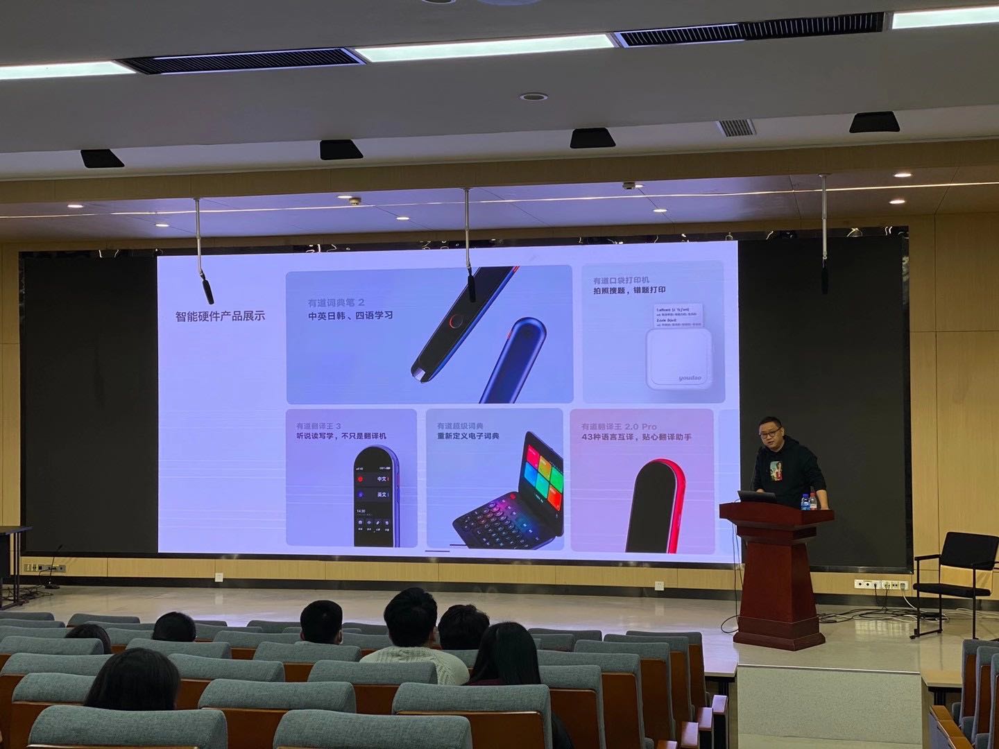 宣讲会现场,有道相关工作人员与同学们分享了有道设计中心的基本概况、设计中心目前的设计团队构成,分享了有道经典设计案例,并向同学们介绍了本年度校园招聘的岗位需求、应聘人员要求等。