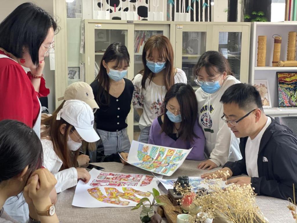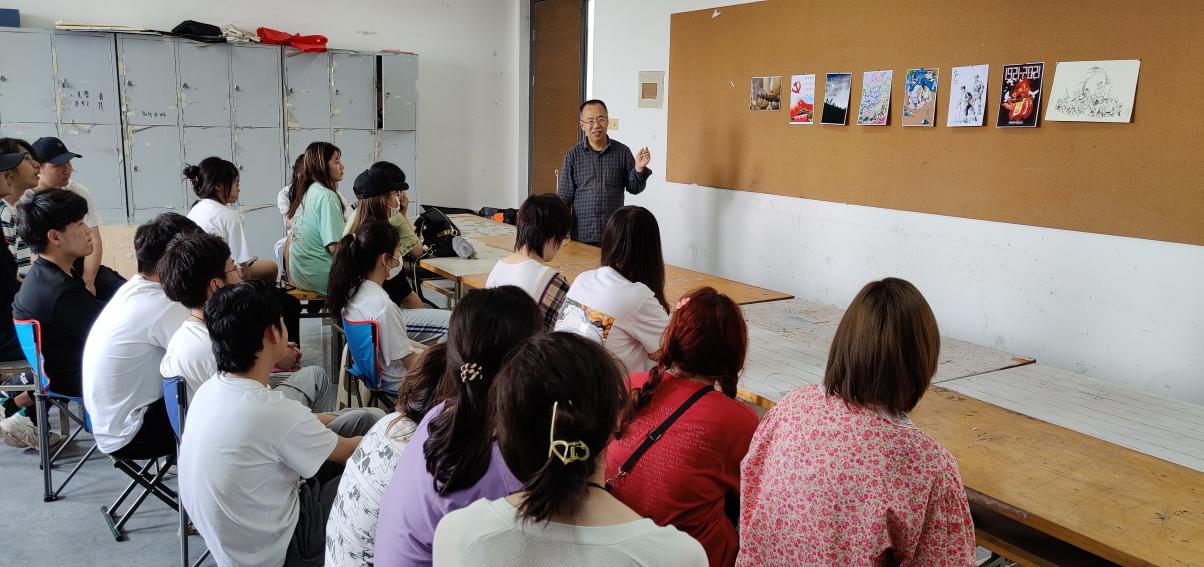 围绕“胜利法宝 复兴伟力”中国共产党统一战线主题宣传画创作统一战线主题创作进行创作指导、创作交流,并围绕统一战线历史中的经典故事,进行爱国主义教育。与同学们深入探讨创作方案,在实践中教育,在实践中体会。在创作过程中,深刻感悟百年光辉党史,体现浑厚的思想感情。发挥深厚红色党史资源优势,融入到设计创作当中。