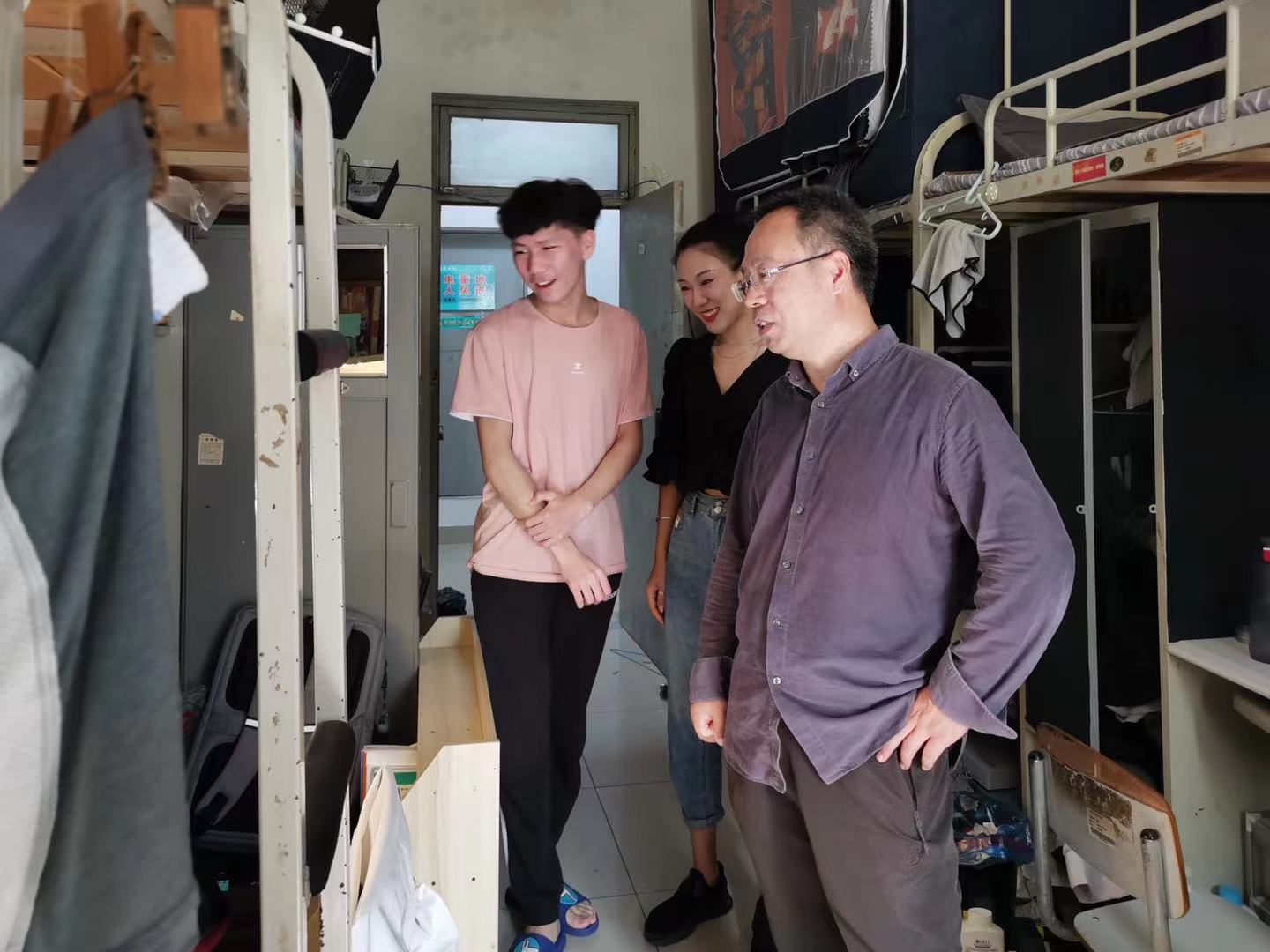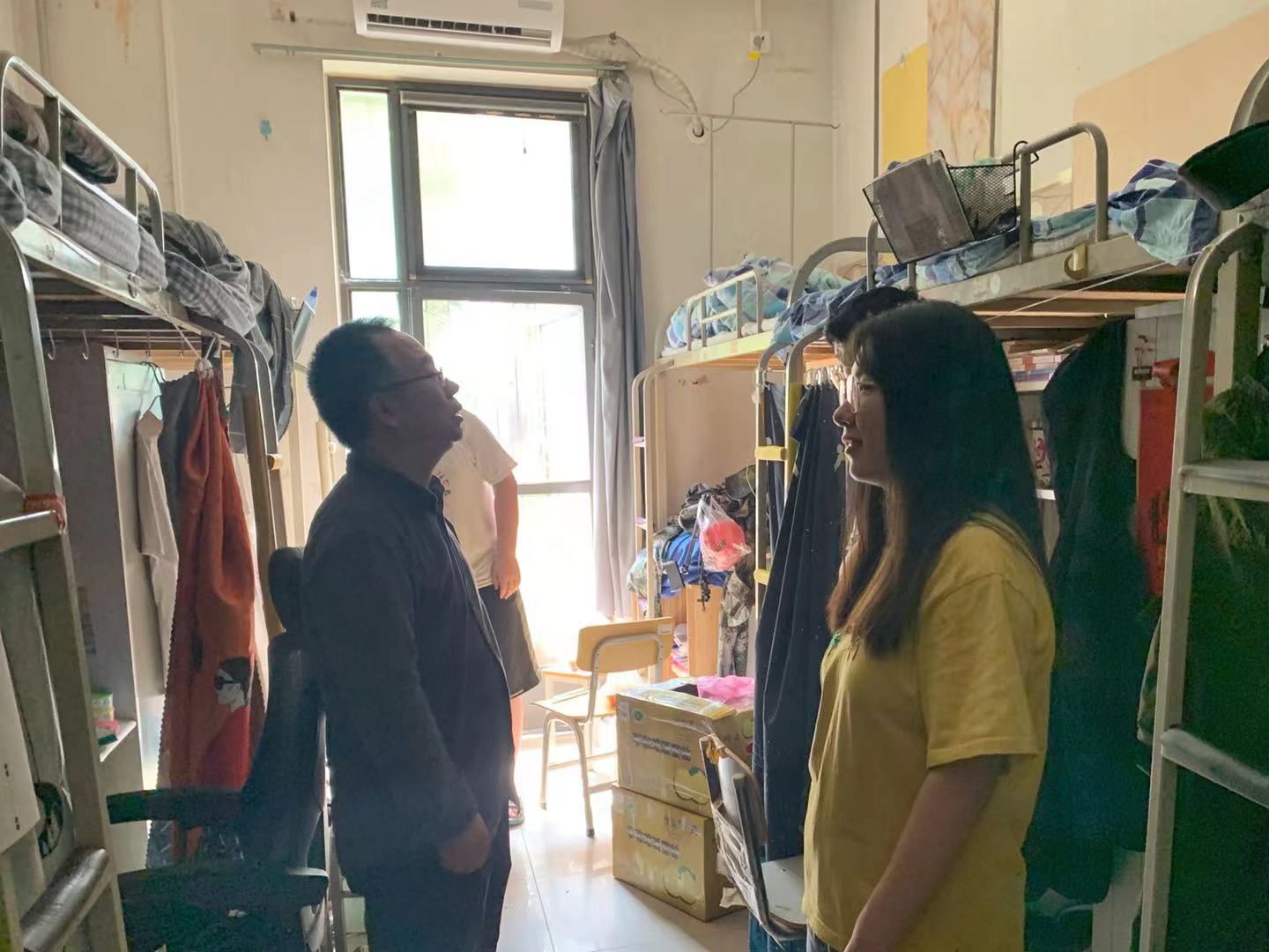 此后,老师们来到公寓楼楼,走进宿舍与学生亲切交流,了解留校同学的假期安排和饮食起居情况。检查过程中,吴焕文与各年级辅导员沟通了我院学生十一假期期间留校、离校人数、去向等,要求辅导员老师做好学生安全教育,叮嘱同学们注意交通、人生、财产安全,牢记疫情防控各项措施。