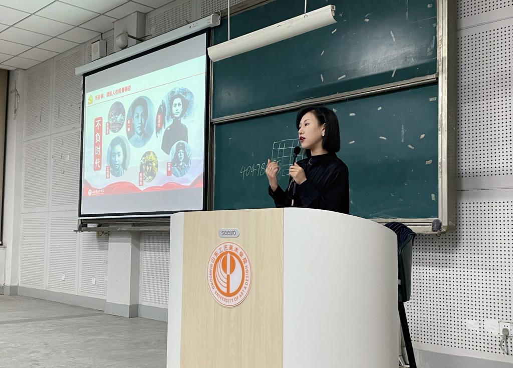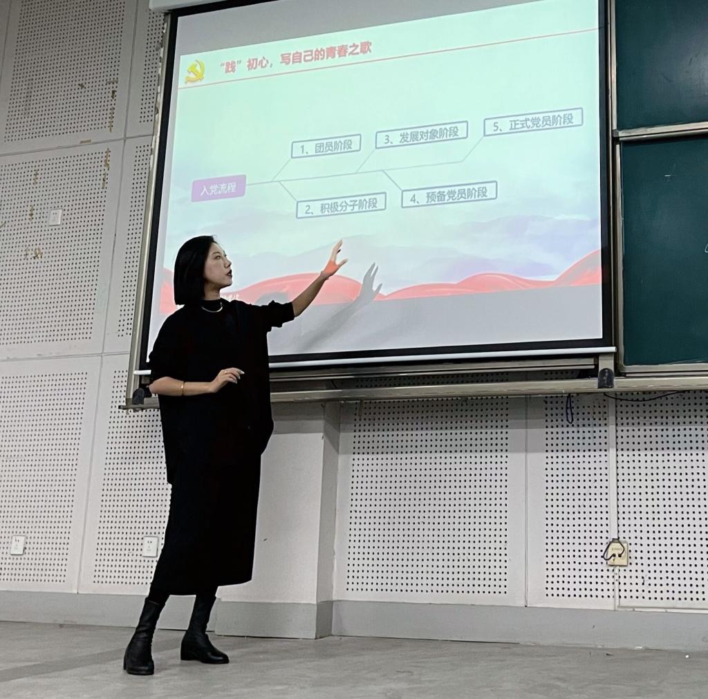 新学期始,视觉传达设计学院党总支积极提炼工作经验,面向2021级新生开展“为中华而读书,为人民而设计”学习习近平总书记“七一”重要讲话系列宣讲暨新生入党启蒙教育系列活动。2021年10月18日晚,学院学生党支部书记、辅导员陈瑶在长清校区综合楼四合堂主讲党课《写一首青春澎湃的歌》。