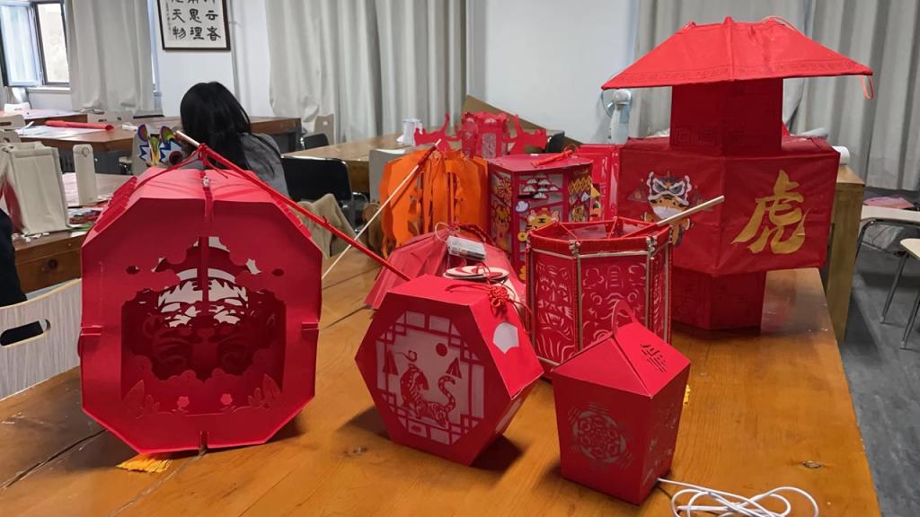 部署会上,佟囡老师结合专业教学,围绕虎年灯笼的结构设计、状态设计和造型设计进行分享,并向老师们展示了灯笼制作课程的学生成果。吴焕文书记强调开展虎年灯笼制作活动旨在为村民营造一个幸福美好、喜庆吉祥的年节氛围,对灯笼制作不限想法、工艺、材料,要积极发挥学生的创造性和主观能动性。各位老师积极讨论发言,拟定了灯笼制作的开展形式和制作周期。当前,灯笼制作活动正如火如荼地进行中。