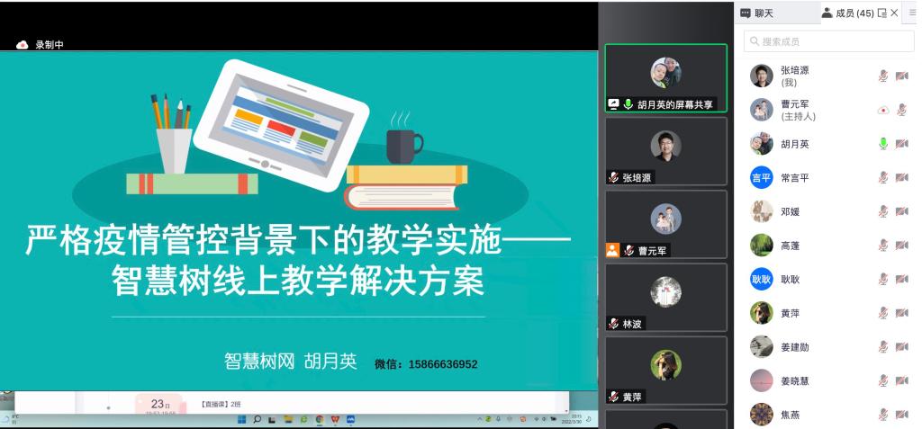 培训过程中,学院组织全体教师通过“智慧树”、“雨课堂”等教学平台进行了直播演练,并邀请专家在直播中演示了开启课程、课程教授及课程后大数据的收集等各个技术环节。培训过程中各位任课教师总结了第一天线上教学遇到的共性问题,并及时进行互动、交流和反馈。随后,专家进一步就智慧树和雨课堂进行详细答疑,并在会后组建了微信答疑群,及时帮助教师答疑解惑。培训全程进行了录像,方便教师回看学习。