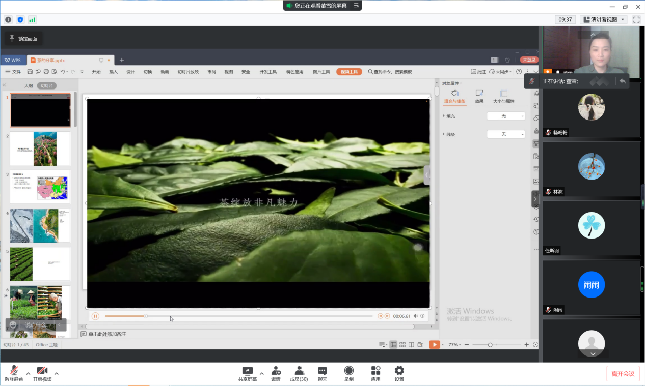 讲座一开始,董雪由一段视频引出今天要讲述的内容——茶艺。然后由浅入深、循序渐进地讲解了茶的起源与演变,茶的分布与分类,不同茶叶的生长时间、制作工艺与冲泡方法,喝茶的基本礼仪等茶文化,让大家感受到了茶文化的博大精深,明白了喝茶是一件非常儒雅的生活方式,喝茶喝的是文化。