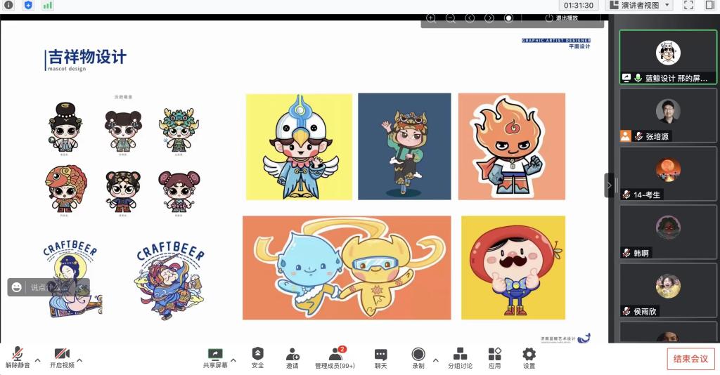 活动中,各企业根据招聘安排,分时段与参会学生开展互动,依次进行企业宣讲、岗位介绍、招聘需求,并结合公司设计实例与参会同学开展互动。其中,蓝鲸艺术设计公司,本次招聘会主招平面设计师、IP设计师,希望应聘者审美标准高、有责任心、有扎实的基础知识、较好的工作能力;乘果广告集团提供了初级动画师、初级插画师、初级平面设计师三类岗位,30余人的需求;红霖视觉设计山东有限公司拟招聘品牌包装设计师8名,商业插画师3名,并承诺入职后会有五险一金、下午茶、各类团建等福利政策。