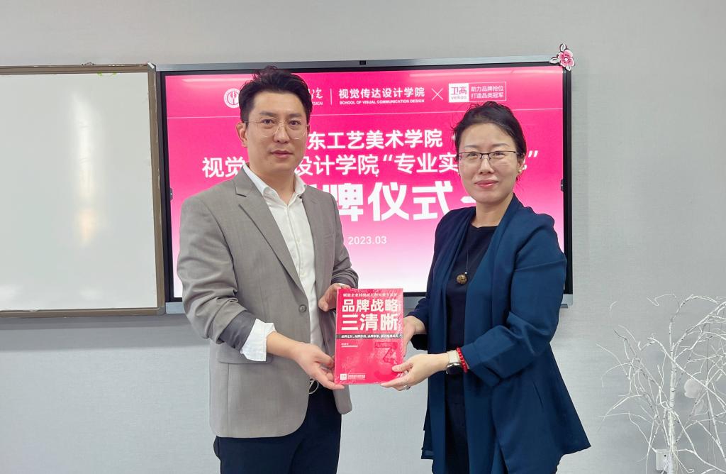 3月10日上午,视觉传达设计学院邀请优秀校友单位卫高品牌策划设计公司总经理辛高卫进入课堂进行专业讲座,并举行专业实践基地授牌仪式。视觉传达设计学院院长王晓峰,党总支书记林波,副院长张培源,教研室张瑞、李永慧老师共同出席仪式。