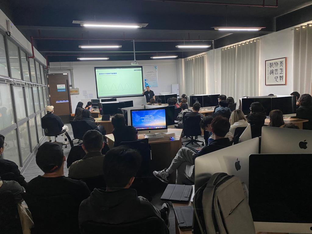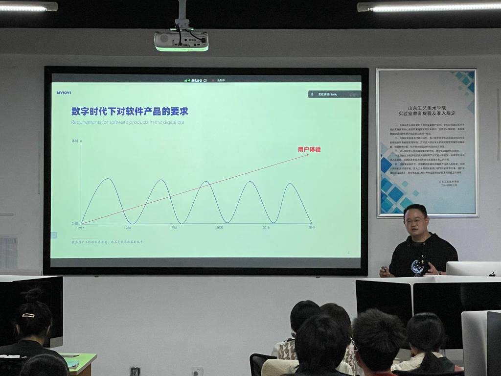 在讲授过程中,史祖耀以互动提问的方式让同学们更为清晰地明确交互体验的概念以及其成为产品设计的衡量标准的原因,赢得学生一阵阵掌声。