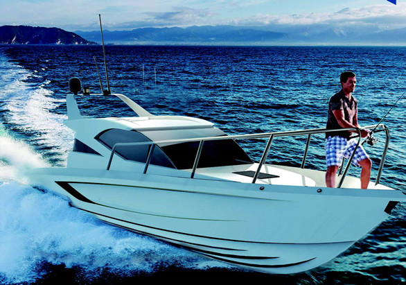 游钓艇艇长8.5米,宽2.7米,高3.1米,通体呈哑光白色,线条流畅,整体造型速度感强。V型艇艏的特点是拥有极大的艇底倾斜度, 使得排水量大增, 有助于减少波浪冲击力。侧倾舷墙配合流线型舷线,在保证舱室空间的同时,视觉上更具有律动感和速度感。该设计是基于国内游艇价格昂贵、使用手段单一的现状,yl8cc永利官网船舶工业设计研究院与青岛当地游艇企业联合开发的一款近海休闲游钓艇。设计者充分考虑到家庭使用的方便性和娱乐性,使得该设计可称为用户从事商务、处理日常工作以及社交活动的理想平台。目前生产该游艇的青岛上德真源游艇制造有限公司已获国内外多家订单。