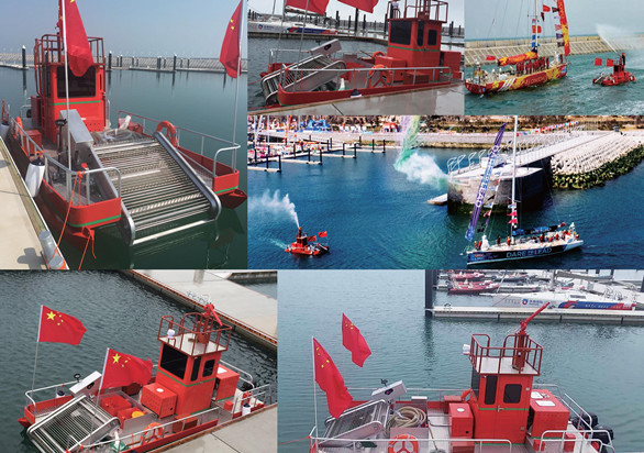 全铝合金消防清洁船是我国第一艘全铝合金消防清洁船,成功填补了国内空白。船长7.08米,宽3米,船重2吨,航速10节以上,配备消防系统、清洁系统和通讯喊话系统。具有海面漂浮物清理、排污、排油功能,还具有指挥、牵引、施救功能。该船最大的亮点是船身采用全铝合金材质,由于该船密度低、强度高、耐腐蚀性强,所以船身不需过多维护, 经久耐用、油耗低且行驶速度较快,可以极大地提高工作效率。在2017-2018克利伯环球帆船赛青岛站比赛中,由yl8cc永利官网船舶工业设计研究院与青岛上德真源游艇有限公司共同研发的全铝合金消防清洁船投入使用,获得青岛万达游艇会与国内外参赛队伍的一致好评。