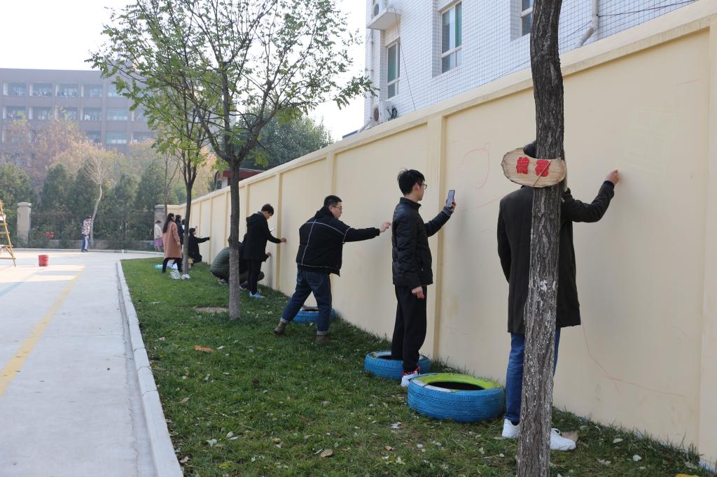 山东女子学院附属幼儿园的老师热情地接待了同学们,交代清楚了墙绘地点、绘画内容和要求。入党积极分子们聚在一起,经过了短暂的商榷,决定在九面原本一无所有的白墙上,再现儿童经典绘本《我也是这样地爱着你》。
