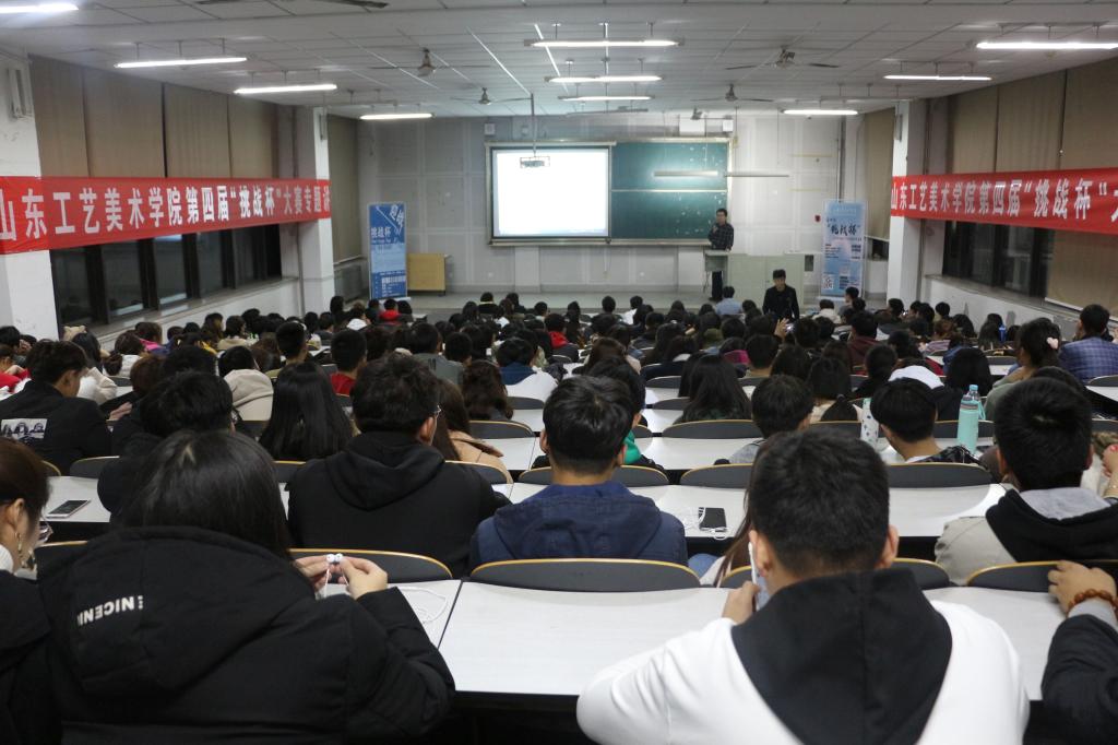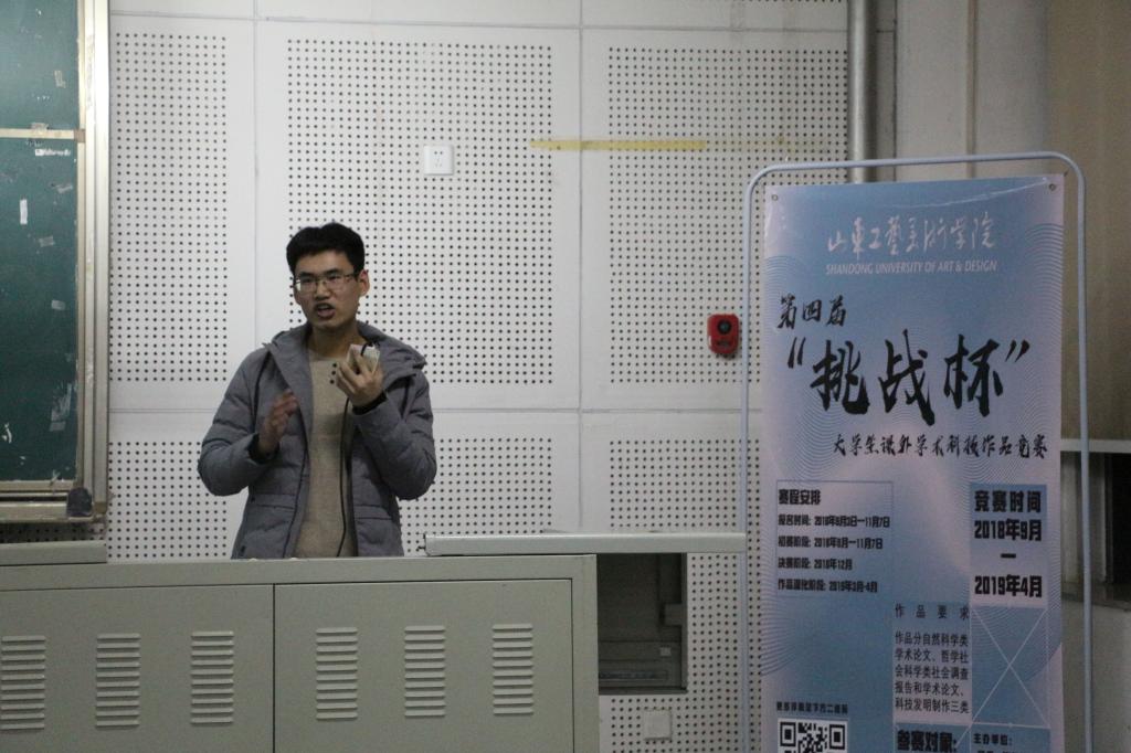 为丰富学生第二课堂活动,鼓励和支持大学生参与课外学术科技作品研究创作,增强参赛团队在2019年全省“挑战杯”大学生课外学术科技作品竞赛中的竞争力,11月7日下午,工业设计学院在长清校区四合堂举办了yl8cc永利官网第四届“挑战杯”大学生课外学术科技作品竞赛专题讲座。讲座由山东师范大学经济学院辅导员张晗以及2017年度“挑战杯”比赛的校赛冠军团队代表张庆勇主讲,团总支书记栗梅、辅导员李训一、“挑战杯”参赛团队及工业设计学院同学共同参与。